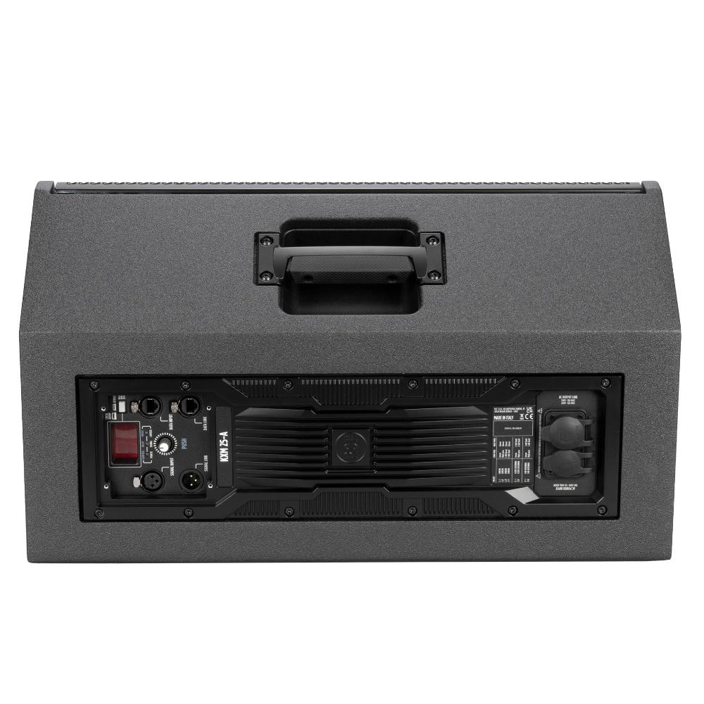 KXM employs high-efficiency Class-D amplification with high headroom and stable performance over long show days, along with high-end AD/DA conversion and advanced onboard DSP. Thermal management is integrated into the mechanical design: the amplifier is mounted on a solid, machined-aluminum structure that serves as a heat sink for efficient, fanless heat dissipation, improving reliability while keeping the enclosure stiff.