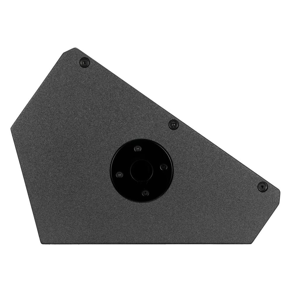KXM monitors use a reinforced wooden enclosure designed for durability in transport and stable performance at high SPL. Internal bracing keeps the cabinet rigid and acoustically quiet, minimizing unwanted vibrations. A heavy-duty, powder-coated steel grille protects the transducers, while an internal foam layer helps reduce dust exposure in daily use. The low-profile wedge geometry and rugged hardware are optimized for real stage work, supporting repeated load-ins, fast changeovers, and consistent results under mechanical stress. When needed, the same controlled directivity also makes KXM suitable as a pole-mounted point source for standalone FOH or fill applications. KXM uses powerCON® TRUE1 TOP locking in/out mains connectors for demanding use cases, including outdoor environments.