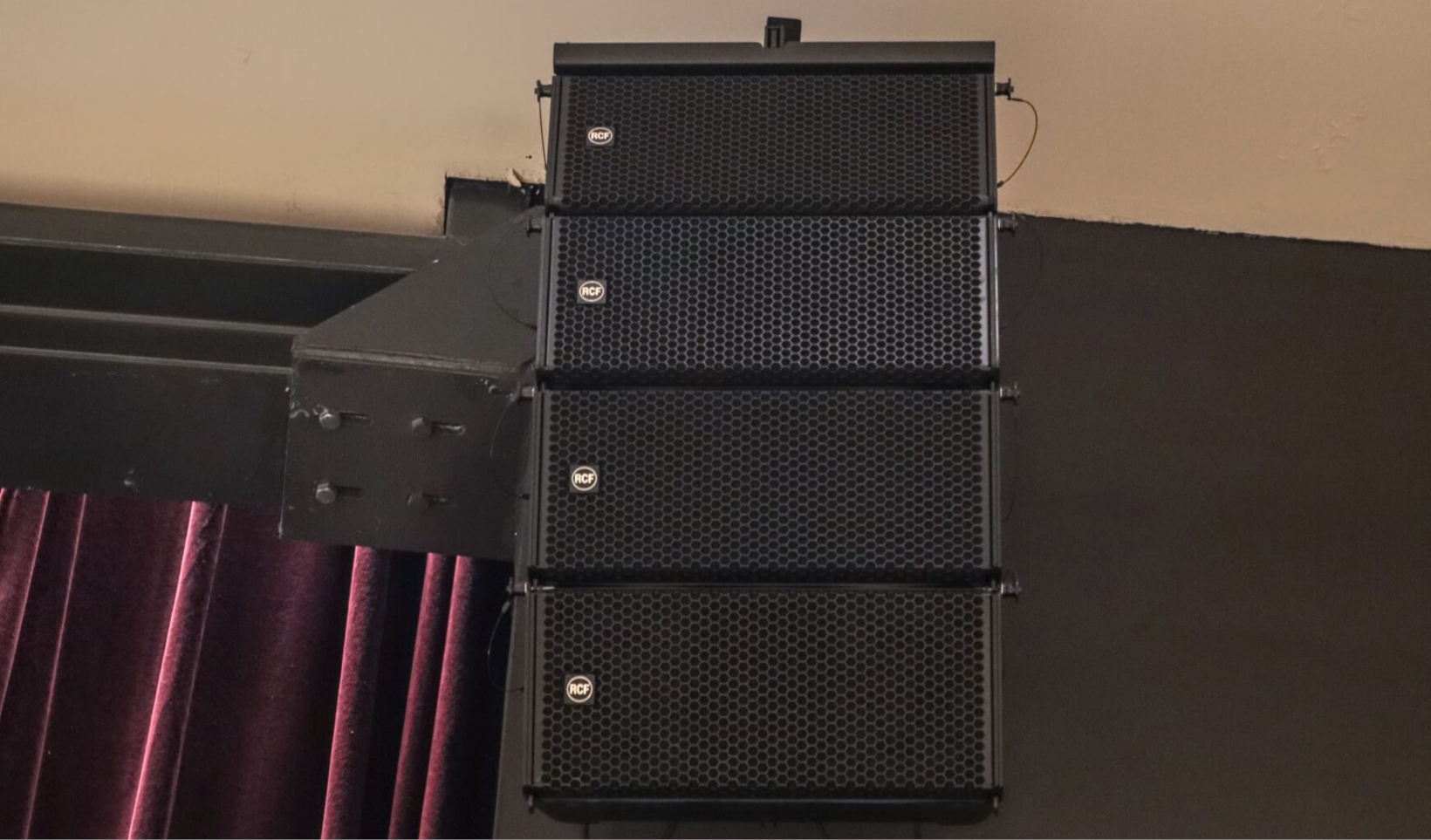 At the heart of the main sound system is an RCF line array solution composed of eight HDL 26-A active line array modules, arranged in two flown clusters of four units each, positioned to the left and right of the stage. An additional array of four HDL 26-A modules is installed behind the cinema screen for optimal audio coverage during film screenings. The system is reinforced by two powerful RCF SUB 9006-AS active subwoofers, each equipped with dual 18” woofers, delivering up to 3600 W RMS and 142 dB SPL, providing exceptional low-frequency performance. For supplementary coverage, the stage is equipped with RCF NX 32-A digital active speakers located behind the backdrop, while RCF ART 932-A active monitors serve as floor monitors during live concerts.