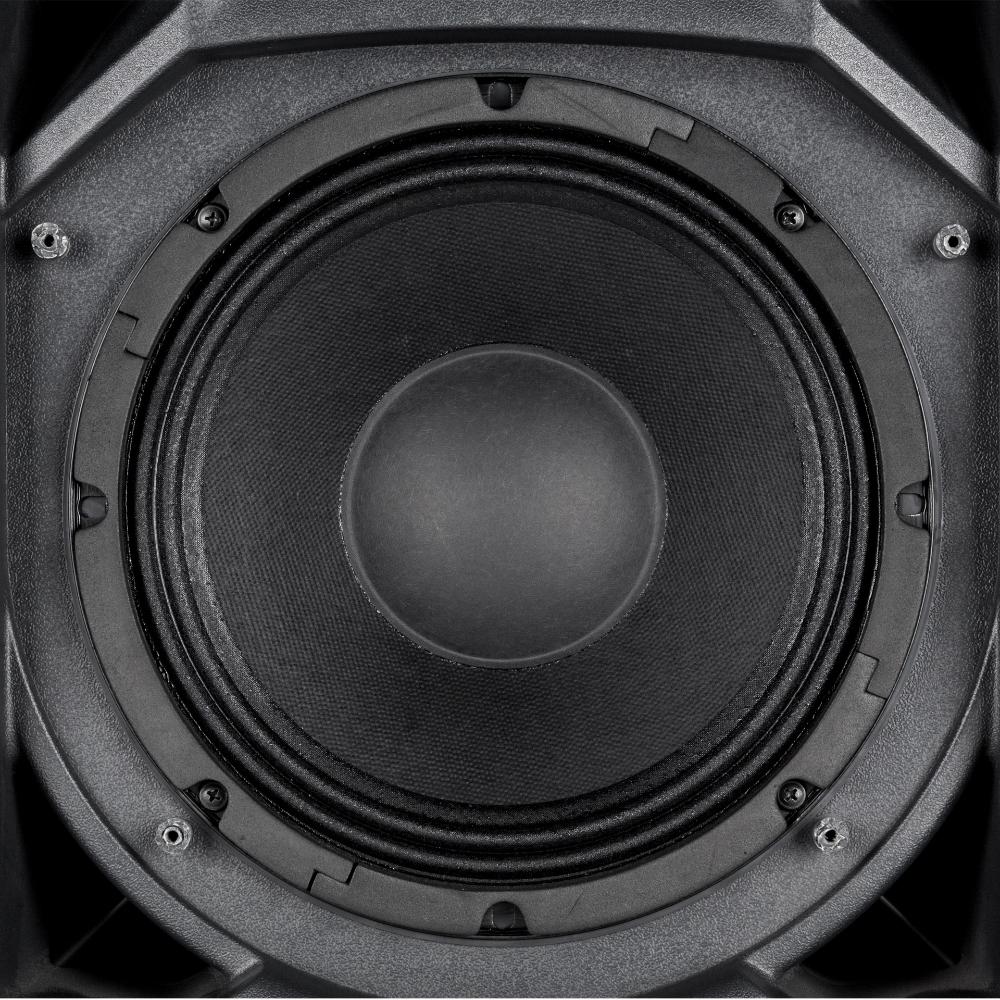 ART 710-A MK4 is a unique product in its category. The compression driver with custom designed dome and high power voice coil offers unique vocal clarity and sound projection. The 10” woofer offers an extremely linear response and a precise, deep low frequency control. The transducers are produced using the most advanced assembly technologies. The amplifier delivers 1400 watts and is controlled by a DSP that takes care of crossover, equalisation, phase control, soft limiting and speaker protections.