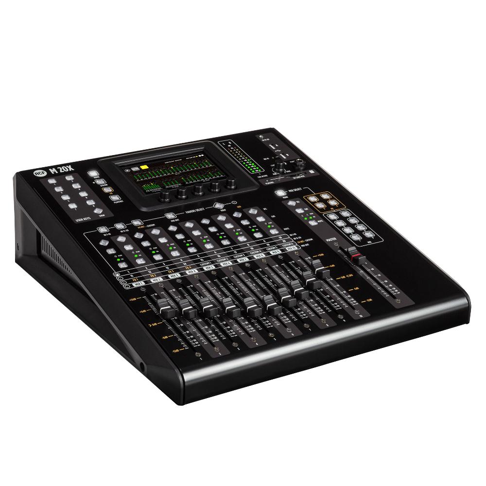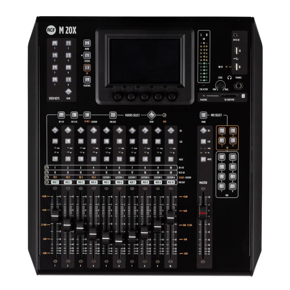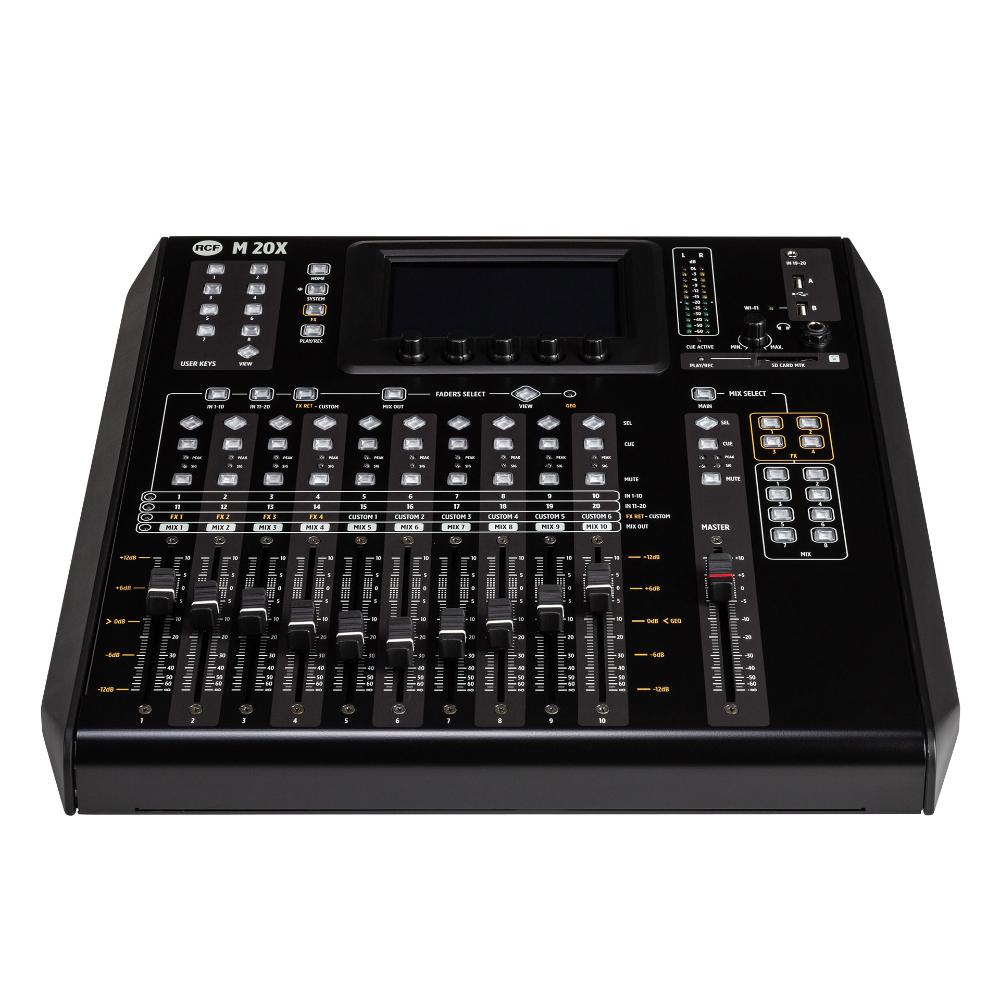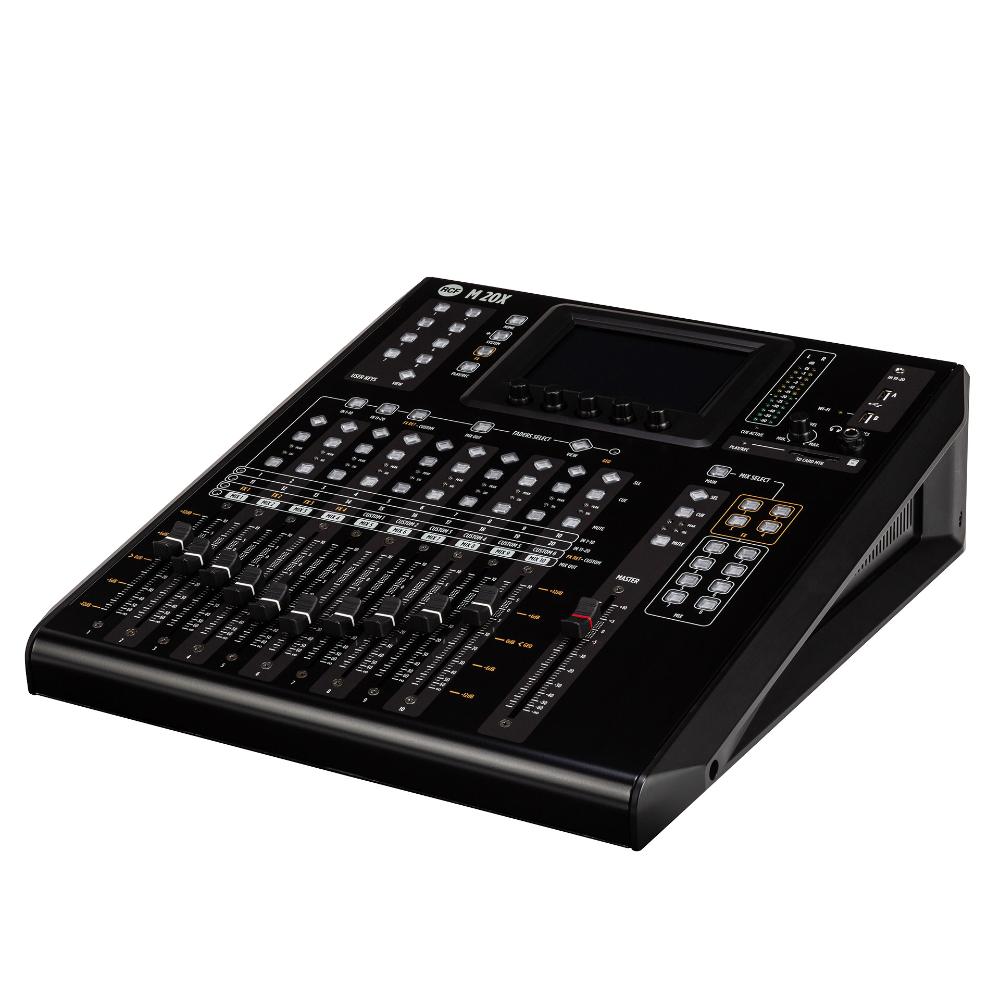 M 20X is a fully recallable mixer, with 16 remote controlled preamps and 11 motorized faders. Despite its dimensions, the M 20X packs a whole suite of capabilities, such as high-profile preamplifiers, top of class DSP with studio-quality processing, WiFi remote control and a comprehensive set of multitrack recording and playback functions. The mixer offers a total of 20 analog inputs and 14 output channels, between the balanced analog outputs and the AES/EBU digital output.