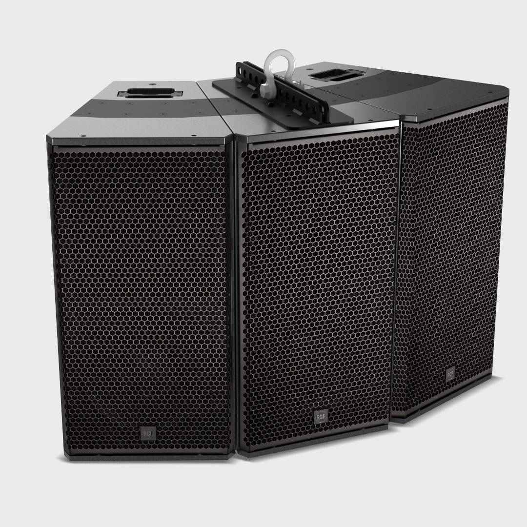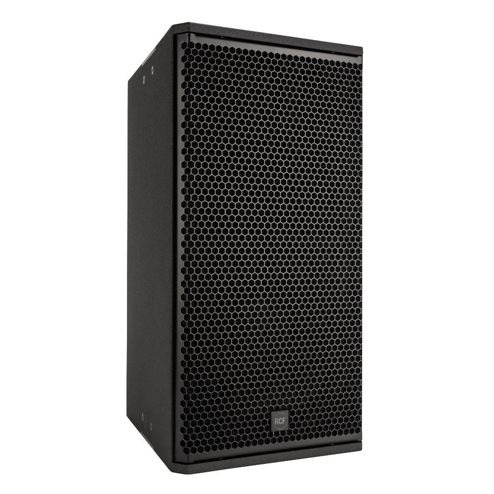 Q 15-P is a two-way, bi-amp point source module for mid-distance and long-throw applications, combining a compact size with very high output and accurate speech and music reproduction. The system is equipped with the latest generation of RCF precision transducers featuring one 15" neodymium woofer and a 4" titanium-neodymium compression driver for a total of 1500 W power rating and 40° (vertical) and 22.5° (horizontal) directivity. The enclosure shape is trapezoidal and offers a 22.5° coupling angle on each side. Q series typical applications span from point-source configurations for mid-distance applications to clusters up to 8 modules for long-throw applications. The grille is epoxy-coated, with a woven fabric backing for dust protection. The cabinet is made of multi-ply Baltic birch plywood with a highly resistant, textured, black polyurea finishing and features two rear-panel Neutrik Speakon NL4 connections for bi-amplification (4 poles)