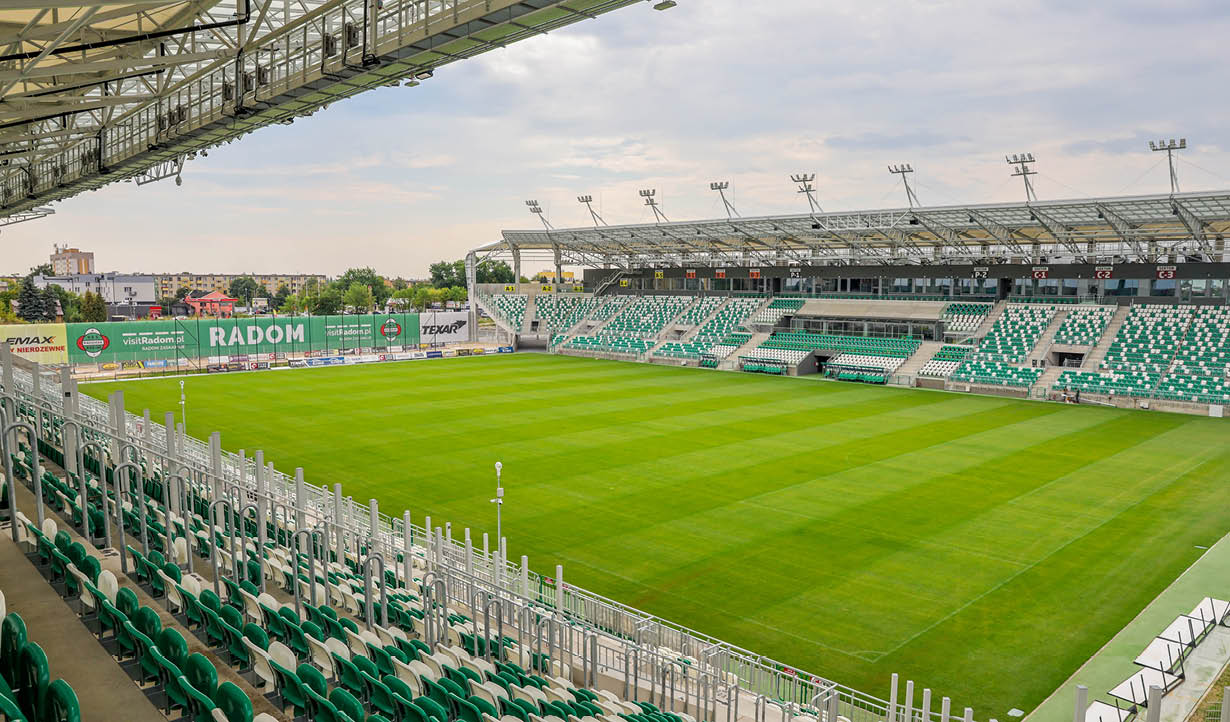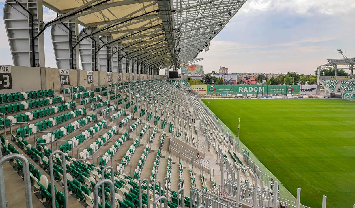 The construction of the new Radomiak Radom stadium began back in 2017 and has been extended several times. The entire project, known as the Radom Sports Center, cost 270 million Polish złoty and included a new football facility and a multi-purpose sports venue. Currently, the stadium has two stands: the northern and southern ends, with the club side aims to proceed quickly with the construction of two additional stands: facing east and west. The current capacity of the stadium is 8,840 spectators, and the target capacity with additional stands will provide seats for up to 15,000 spectators.