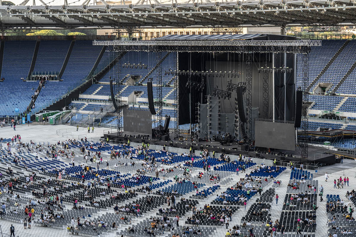 Lucio Boiardi Serri of the TT+ Audio team, assisted by his colleague Emanuele Morlini, describes the audio system, "We have 42 GTX line array systems divided into 4 main / side line arrays and 48 TTS 56-A subwoofers in vertical position, and a stack of 3 with the center sub facing the stage in a cardioid configuration. The constant distribution of low frequencies on the stadium is managed through the "curves" function integrated in RDNet, which allows optimal coverage of the venue. This includes the lateral extremes, without having a too evident sum in the center,” explains Serri.