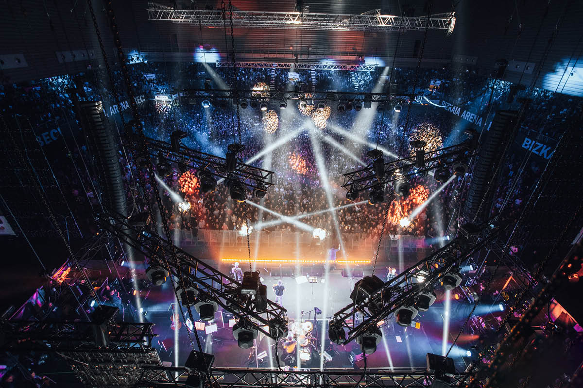The concert was engineered by Sonort, with technical production overseen by Lucio Boiardi Serri, Product Specialist & Application Engineer at TT+ Audio. Boiardi Serri traveled from Italy to the arena to ensure the smooth operation of the sound system during the event. The stage featured a main L+R and outfill, accompanied by the corresponding front fill, without delay lines. The main concert system is composed of [18+18] GTX 12 passive line array modules, while the side-fills comprise of 2 clusters of [10] HDL 30-A active line arrays each, the front-fill includes [4] TT 1-A in front of the stage, and [2] TT 22-A MK2 on the sides of the LED walls. A large quantity of TT 25-CXA are deployed as stage monitors and two clusters of two TTL 6-A columns as side fills monitors.